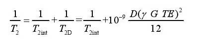 在梯度场下,如果采用相同TW和不同TE进行数据采集(如图2所示),此时测量的横向弛豫时间内就包括流体扩散系数信息。