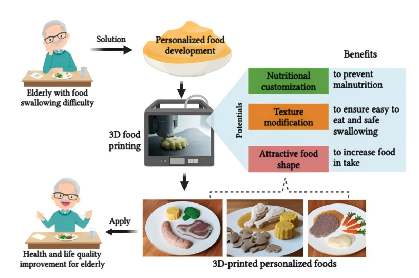 3D打印技术凭借其精准营养定制和个性化膳食设计的独特优势,为破解上述难题提供了新路径。然而,该技术应用于吞咽食品开发的核心瓶颈在于如何设计兼具结构稳定性与营养功能的打印材料。