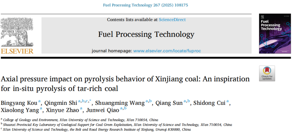 文献解读|西安科技大学师庆民教授团队《Fuel Processing Technology》:轴向应力对新疆某区块煤样热解行为的影响:富油煤原位热解的启示