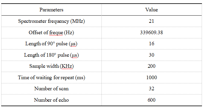 采用了江苏开云足球提供的NMI20-015 V-I/15 mm分析仪进行LF-NMR分析,具体的实验参数如表1所示。